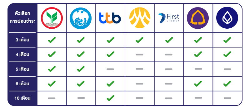 - ลูกค้าจะเป็นผู้ผ่อนชำระกับทางบัตรเครดิตของธนาคารที่ลูกค้าเลือกโดยตรง