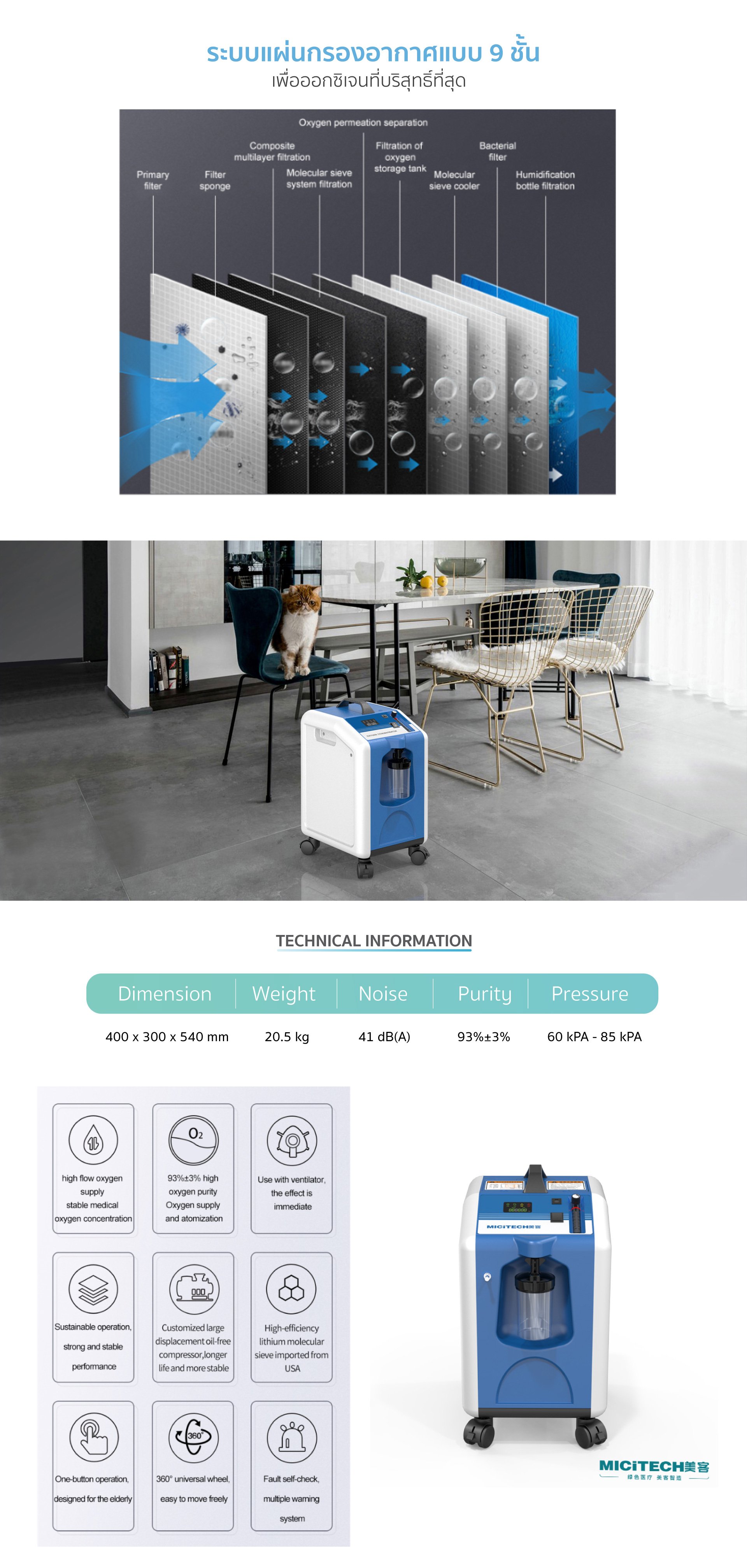 เครื่องผลิตออกซิเจน ขนาด 10 ลิตร ยี่ห้อ Micitech รุ่น CP101